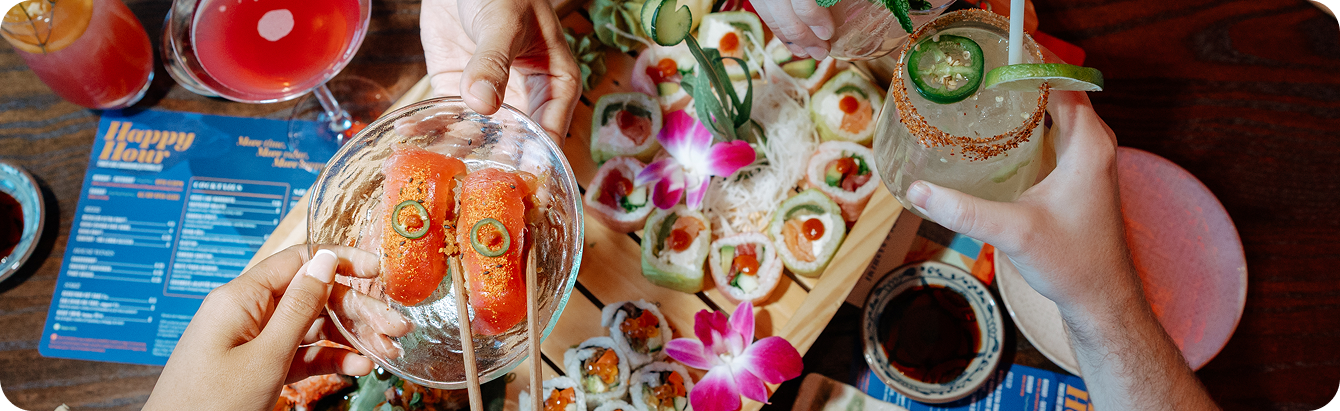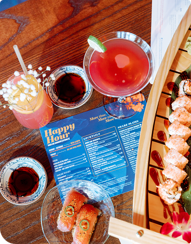 The only thing better than sushi? Sushi all day, with drinks. Good vibes should roll when you do - so we stretched happy hour to be almost all day, every day. Sushi + sips, on your schedule.